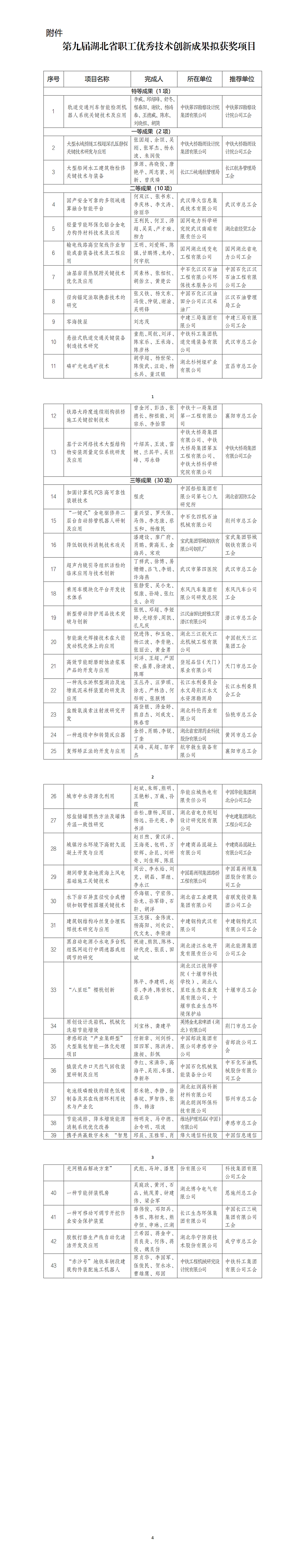 附件:第九届湖北省职工优秀技术创新成果拟获奖项目