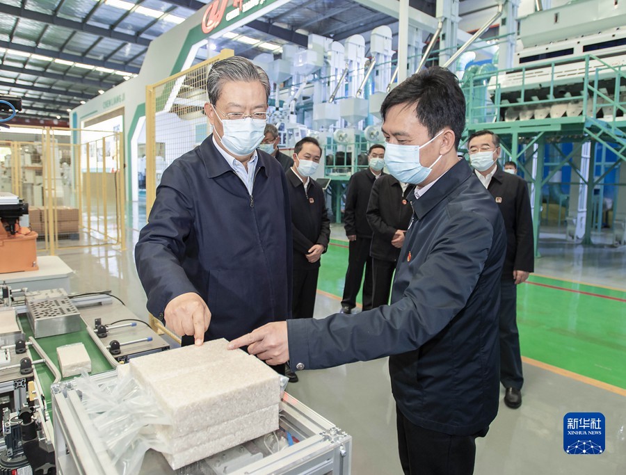 4月10日至12日,中共中央政治局常委、中央纪委书记赵乐际到湖南调研。这是4月10日,赵乐际在郴州粮油机械有限公司调研。新华社记者 李涛 摄