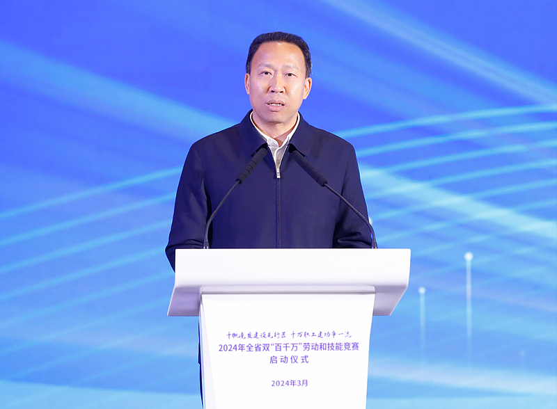 3月25日,2024年全省双“百千万”劳动和技能竞赛启动大会在汉举行。省人大常委会副主任、省总工会主席刘雪荣出席并讲话。